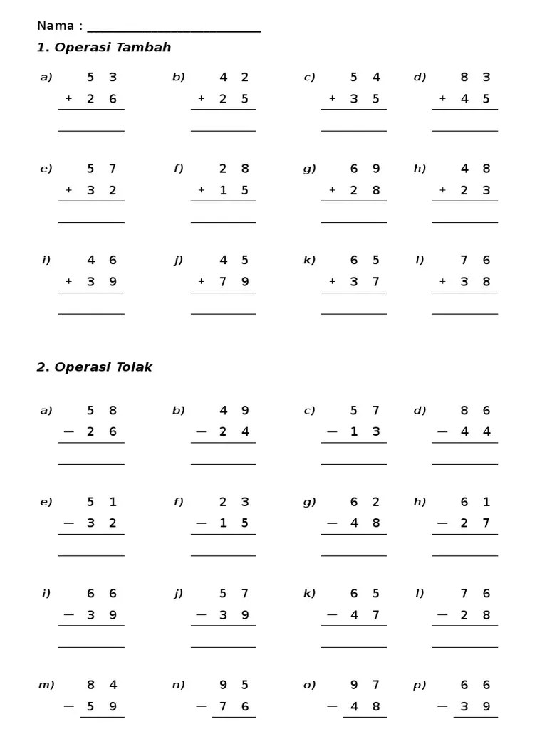 Matematik Tambah Tolak Tahun 1 : 3480 Soalan Latihan Asas Matematik Tambah Tolak Darab Otosection